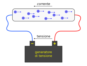 La corriente eléctrica es el flujo de carga eléctrica que recorre un material.2 Se debe al movimiento de las cargas (normalmente electrones) en el interior del mismo. Al caudal de corriente (cantidad de carga por unidad de tiempo) se le denomina intensidad de corriente eléctrica. En el Sistema Internacional de Unidades se expresa en C/s (culombios por segundo), unidad que se denomina amperio (A). Una corriente eléctrica, puesto que se trata de un movimiento de cargas, produce un campo magnético, un fenómeno que puede aprovecharse en el electroimán.